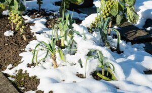 Poireaux dans la neige