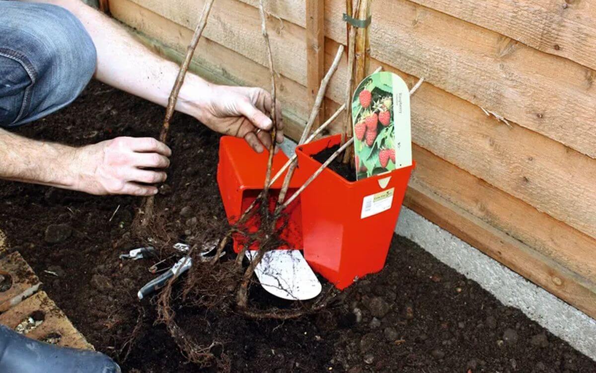 Plantation de framboises en pot